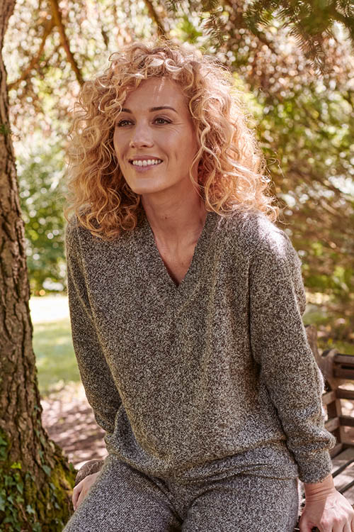 Optez pour l’élégance et la chaleur avec notre pull en laine col V, conçu spécialement pour affronter l’hiver. Ce ravissant tricot s’inscrit dans notre collection exclusive, créée par Myriam Joly : notre fil yack-mohair-soie. Ce mélange parfaitement orchestré rehausse chaque fibre naturelle pour en extraire leurs principales qualités. Les propriétés isolantes de chacune de ces fibres viennent compléter la chaleur naturelle réconfortante du yack et du mohair. Vous ressentirez cette chaleur cocooning dès que vous enfilerez ce pull, une véritable caresse pour votre peau. Laissez la douceur de nos laines réchauffer vos épaules tout au long de l’hiver ! Notre pull en laine a été façonné sans couture, réalisé en une seule pièce grâce à nos métiers spéciaux. Cette méthode élimine tout gaspillage de matières et vous offre un confort supérieur, sans aucune surépaisseur gênante. Le col en V, minutieusement remaillé à la main par Camille, Gabrielle et Katia, est un exemple du savoir-faire précieux de notre atelier. Le remaillage, un art transmis de remailleuse à remailleuse, permet de joindre les mailles sans couture, éliminant ainsi toute épaisseur superflue. Arborant un tricot jersey endroit, des manches bien ajustées et des finitions en côtes 1/1 au niveau des manches et du corps, ce vêtement est conçu pour être porté avec une coupe ample. En cas d’hésitation entre deux tailles, préférez la taille la plus petite pour un ajustement optimal !